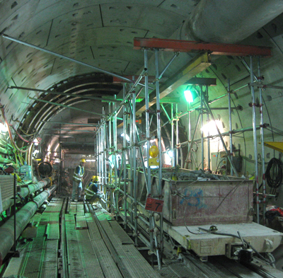 After completion of TBM mining, there are numerous preparations prior to this casting. They are, removing the TBM supply line, dismantling the temporary tracks, cleaning the slurry from the inverts, grinding the segments, cleaning and protecting the segment grooves and so on.