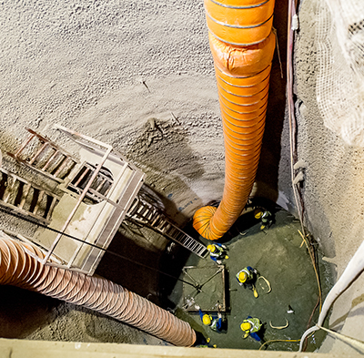 A shaft is a vertical tunnel. Shafts are usually constructed when there is a need to reach a formation level below surface in a restricted area. They are used for sewer constructions, tunnels, TBM launching, storage area etc. Excavation can be done manually or mechanically depending on the diameter of the shaft and the geology encountered. In hard rock conditions, rock splitting and drill&blast methods are adopted. Asia Tunnelling & Construction P/L have the knowledge, experience, machinery and experienced personnel required for shaft sinking in either rock or soil conditions.