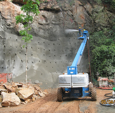 Rock Bolting is used for securing the rock mass from collapsing or for improving the rock stability of the excavated face. It is an additional support form and it is usually followed by shotcreting. Soil nailing has the same philosophy but is used to maintain slope stability. Both are followed by shotcreting works and have a variety of bolts and nails depending on the geology. Applications can be found at road construction, tunnel construction, deep excavations, shafts, slopes, etc. Asia Tunnelling & Construction P/L have the adequate machinery, experienced personnel and staff to successfully manage these works at the top quality.