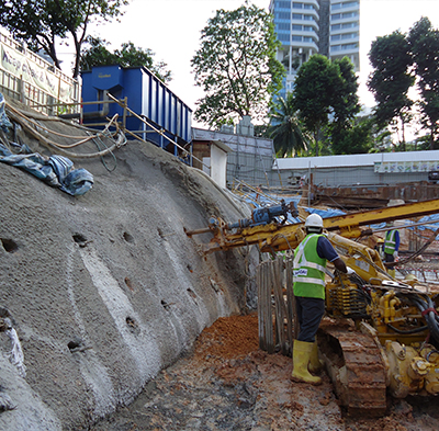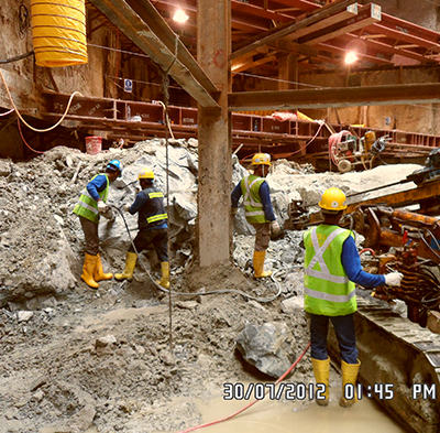 Mined tunnel construction is considered a special tunnelling technique in Singapore. Most tunnels in Singapore are constructed either by cut and cover method or tunnel boring machine (TBM). However, mined tunnels are very important especially when the C&C method or the bored tunnel is not feasible due to the close proximity of critical utilities such as high voltage electrical cables, gas pipes, and telecommunication cables or sewers and canals. Also, mined tunnels are often used to facilitate a launching chamber for TBMs or for small length tunnels were TBM method is too expensive.Various dimensions of mined tunnels can be constructed depending usually on the purpose of the tunnel. It can vary from a small tunnel connecting two buildings to a huge tunnel for launching a bored tunnel machine. Asia Tunnelling & Construction P/L have the knowledge, experience, machinery and experienced personnel to construct mined tunnels in either rock or soil conditions.