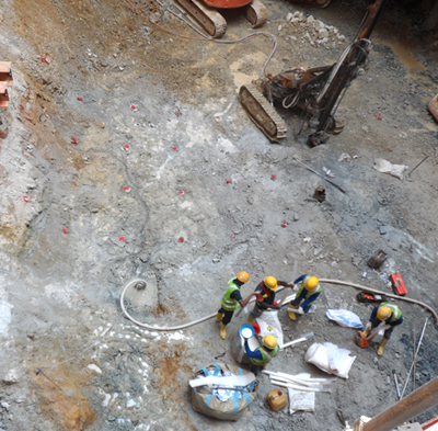 Grouting is the procedure when a cement mix is pumped into a ground to improve its geotechnical characteristics and minimize the water ingress.Grouting is also used to fill up voids, gaps or pockets. Ground improvement is common in tunneling works before starting the excavation and to minimize the water ingress. Different types of grout mixes are available, depending on the geology faced at each project.