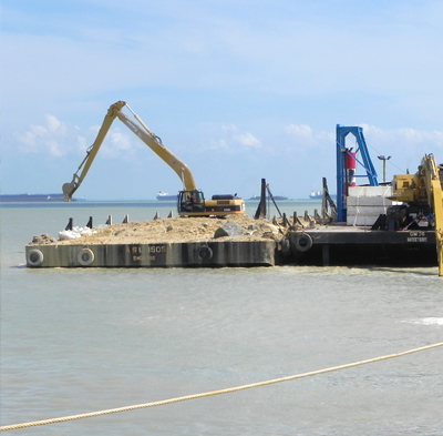 In some cases where dredging is met with extremely hard rock formation, underwater drilling and blasting operations are performed usually for harbour deepening, pipeline construction and extension of ports. With relevant experience in this field of work, we can provide the expertise to undertake the blasting works with our latest explosives products and systems.
