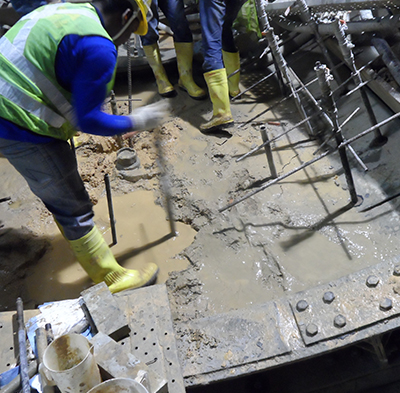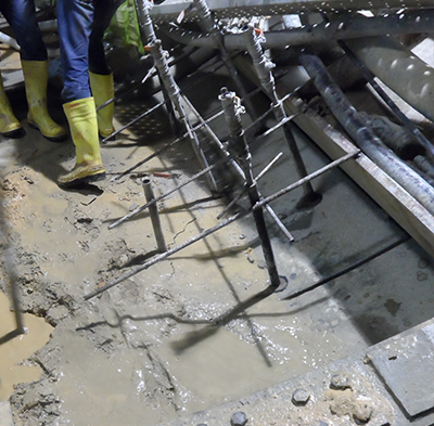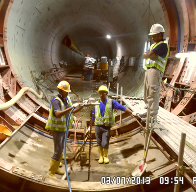 After completion of TBM mining, there are numerous preparations prior to this casting. They are, removing the TBM supply line, dismantling the temporary tracks, cleaning the slurry from the inverts, grinding the segments, cleaning and protecting the segment grooves and so on.