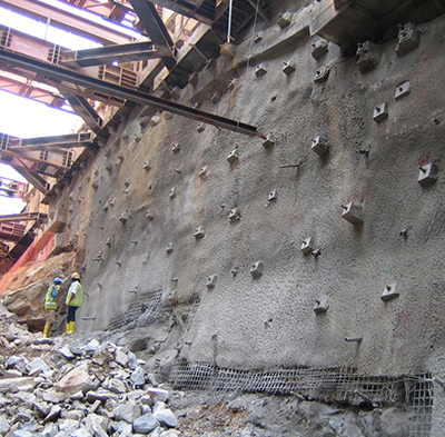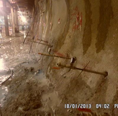 Rock Bolting is used for securing the rock mass from collapsing or for improving the rock stability of the excavated face. It is an additional support form and it is usually followed by shotcreting. Soil nailing has the same philosophy but is used to maintain slope stability. Both are followed by shotcreting works and have a variety of bolts and nails depending on the geology. Applications can be found at road construction, tunnel construction, deep excavations, shafts, slopes, etc. Asia Tunnelling & Construction P/L have the adequate machinery, experienced personnel and staff to successfully manage these works at the top quality.