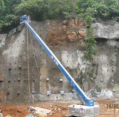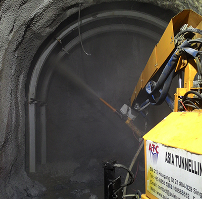 Shotcrete spraying has a variety of applications and plays a major role in temporary support. Wet or dry method is used together with wiremesh or steel fibers to form the temporary support for geotechnical works and is commonly used in tunnel construction. Depending on the nature of works, different equipment, technics and setting up is required for the smooth and successful completion of the project. Asia Tunnelling & Construction P/L have the adequate machinery, experienced nozzlemen and staff to successfully manage shotcreting works at the top quality.