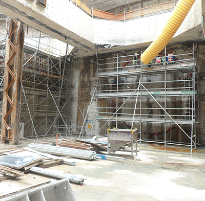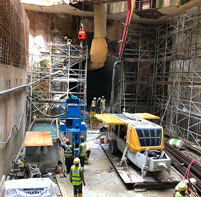 Once the formation level is reached in a station box, the location where the TBM will start the journey will be marked. However, the ERSS structure is still in the way and has to be demolished to facilitate the launch. A tunnel eye is a demolition job that usually requires to demolish a 1.2m thick heavily reinforced wall and assess the ground conditions behind it before the TBM launch or retrieval. Demolition works can be done mechanical or even manually depending on site conditions.