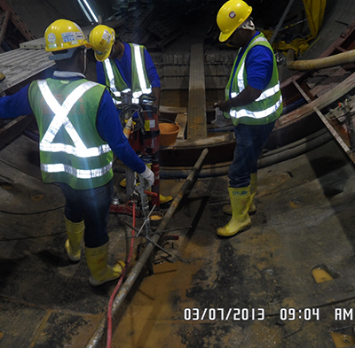 After the first stage casting, the precast segment lining is drilled at dimple locations to install various brackets that will be used for cabling of live tunnel operation.