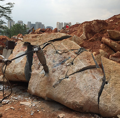 “Rock splitting by mechanical means is perfect for sensitive areas or for small quantities of rock or boulders. The operation set up is relatively easy and no vibration is created therefore it is safe to use very close to structures and utility lines, pipes or sewers. The mechanical splitter can be also used to demolish concrete blocks and to pre-split sensitive areas.”