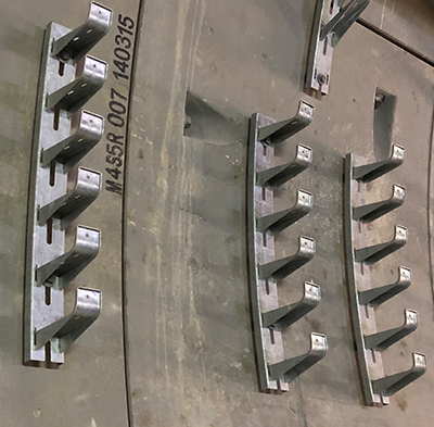 The brackets are fixed at the segment face by means of bolt and expansion anchors hammered into the drilled holes.